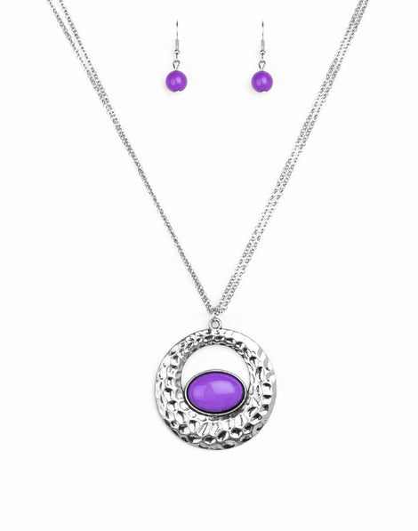 A vivacious purple bead is pressed into the bottom of a shimmery silver frame rippling with hammered textures for a seasonal look. Features an adjustable clasp closure.
