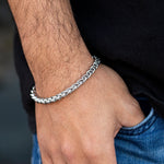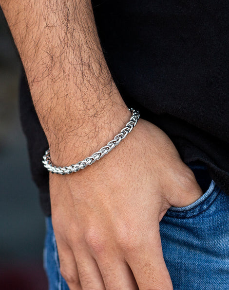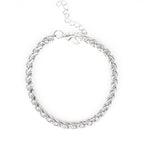A classic silver wheat chain links around the wrist for a casual look. Features an adjustable clasp closure.